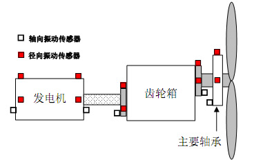 帶有加速度振動傳感器的水平布置的風(fēng)力發(fā)電機組
