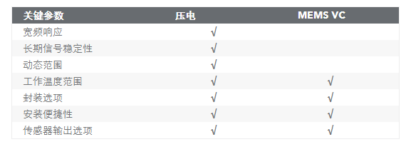 在以下段落中,我們將比較典型壓電狀態(tài)監(jiān)測加速度傳感器和寬帶 MEMS 可變電容加速度傳感器(也用于狀態(tài)監(jiān)測應(yīng)用)的這些關(guān)鍵性能規(guī)格。