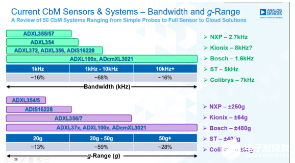 經(jīng)過對比不難發(fā)現(xiàn),兩款傳感器在靈敏度上非常接近,而ADXL1002隨頻率的相移相對于對比產(chǎn)品要小一半,底噪上壓電陶瓷要比MEMS小一些。在成本方面,Eason介紹,壓電陶瓷比MEMS高出許多——$100 vs $30。以下是ADI常用于振動(dòng)監(jiān)測的加速度傳感器選型: