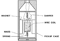 當(dāng)線圈中的導(dǎo)線穿過(guò)磁場(chǎng)時(shí),會(huì)在線圈的兩端導(dǎo)線之間感應(yīng)出電壓。感應(yīng)電壓是由能量從磁體的磁通場(chǎng)到線圈的傳遞引起的。當(dāng)線圈因振動(dòng)而被迫通過(guò)磁場(chǎng)時(shí),會(huì)產(chǎn)生代表振動(dòng)的電壓信號(hào)。