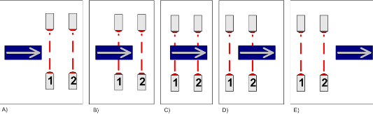 如果可以使用一個(gè)光電傳感器,則很難確定物體的運(yùn)動(dòng)方向。為此,應(yīng)調(diào)制光束并使用多普勒效應(yīng),或者應(yīng)測(cè)量朝著物體發(fā)送的一系列脈沖之間的時(shí)間。該方法對(duì)于實(shí)際實(shí)施而言是相當(dāng)困難的,相當(dāng)昂貴,并且并非每個(gè)人都能夠使用它們。將傳感器彼此相鄰放置并檢查其激活順序要容易得多。