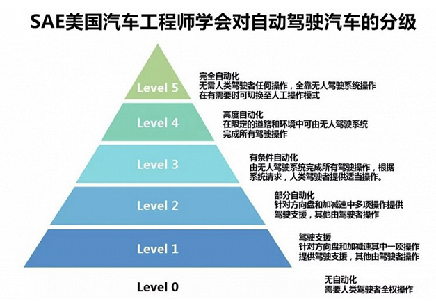 L3指有條件的自動(dòng)化;L4指高度自動(dòng)化,具體可參照SAE汽車(chē)工程師學(xué)會(huì)對(duì)自動(dòng)駕駛汽車(chē)的分級(jí)。按照北美標(biāo)準(zhǔn),可能未來(lái)要發(fā)展到Level5,才能實(shí)現(xiàn)理想狀態(tài)中、無(wú)需方向盤(pán)的全無(wú)人駕駛。