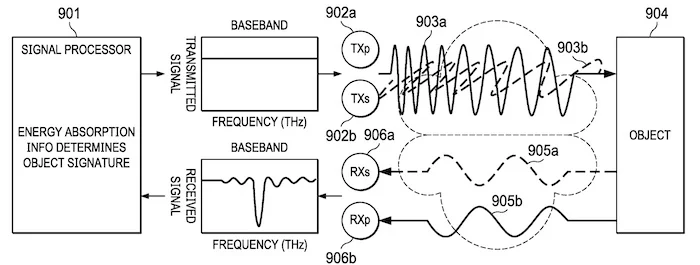 該專利的具體用途含糊不清,細節(jié)表明“發(fā)送/接收太赫茲EM波的電子設備正在變化,和/或在環(huán)境中反映太赫茲波的一個或多個物體的位置和/或方向正在移動。 !