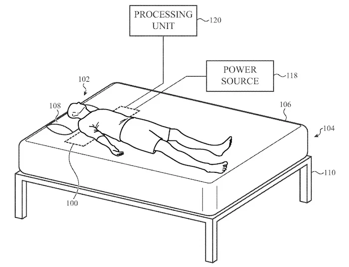 蘋果公司最終的專利技術(shù)著重于收集與睡眠質(zhì)量有關(guān)的生物識別數(shù)據(jù)。該技術(shù)的主要特點是其薄型外形和靈活性,使其在睡眠時不會打擾用戶。