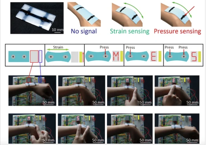 在此演示中,壓力和應變感測由每個動作獨立控制。圖片由《科學報告》提供