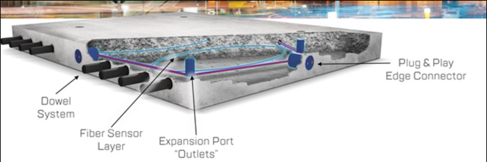 嵌入預制混凝土路面的光纖傳感器層利用蝕刻的光纖和入射光的失真來解釋有關其上方道路上發(fā)生的情況的數據。