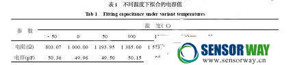 金屬鉑電阻對溫度變化敏感,若選用零度時電阻值為1000Ω、溫度系數(shù)為3851×10-6/℃的鉑電阻,其溫度變化范圍從-50~350℃時,相應(yīng)的電阻從803.07~2296.73Ω。由電阻的變化可測得環(huán)境的溫度。壓力傳感器在不同壓力下有不同的電容值,因此,在同一溫度下,輸入同一交流電壓信號時,其輸出信號不同。