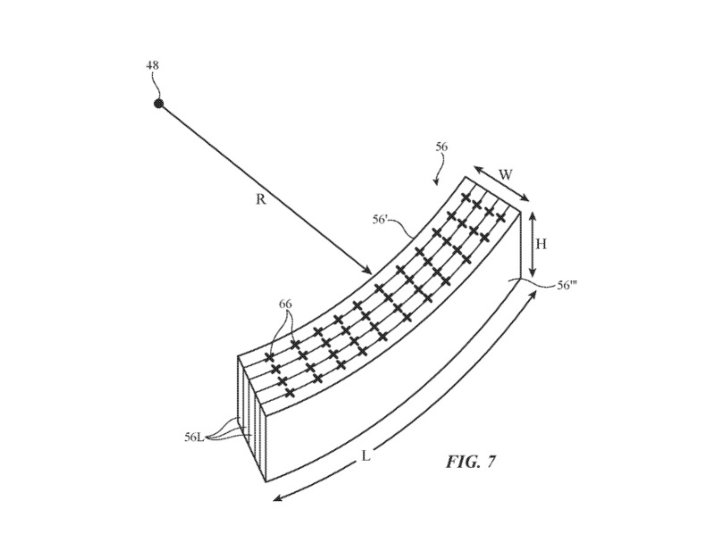 這是關(guān)鍵部分,這種光學(xué)傳感器可能會(huì)被布置并彎曲,以占用盡可能少的空間。蘋果公司說:“每個(gè)光控部件都可以由一疊層壓彎曲的光控膜形成。” “用于堆疊的光控膜可以使用具有彎曲表面的層壓工具壓制成所需的彎曲形狀!