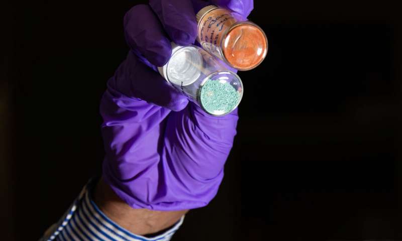 金屬有機(jī)框架材料類似于海綿,用于將捕獲的PFOS靶向微流板內(nèi)的小探針。圖片來(lái)源:Andrea Starr | PNNL