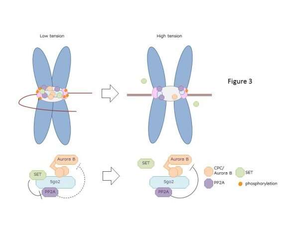 “自從1996年發(fā)現(xiàn)Aurora B激酶(Aurora B)以來,我們已經(jīng)發(fā)現(xiàn)Aurora B通過調(diào)節(jié)微管與動(dòng)粒體的附著來調(diào)節(jié)染色體,從而作為張力傳感器發(fā)揮了不可或缺的作用,并且蛋白磷酸酶2(PP2A)也起作用通過控制與Aurora B相關(guān)的染色體排列來作為張力傳感器!睎|京早稻田大學(xué)的Yasuhiko Terada教授說!暗,該系統(tǒng)極其復(fù)雜,其分子機(jī)理還沒有被很好地理解。”