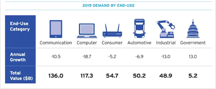 關(guān)于半導(dǎo)體最終用途的2019年需求的高級(jí)圖形。圖片由新航提供