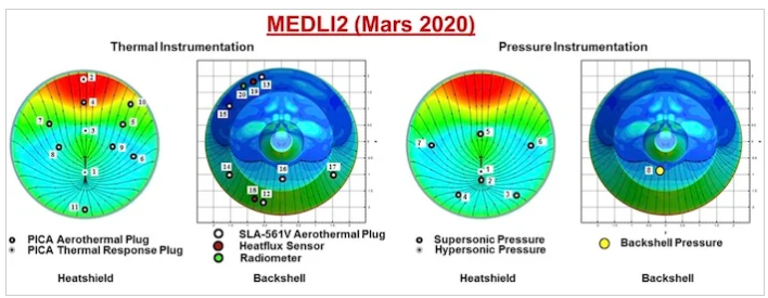 Perseverance隔熱板上的一套傳感器稱為MEDLI2,旨在測量流動(dòng)站的進(jìn)入,下降和著陸(EDL),以更好地協(xié)助未來的任務(wù)。