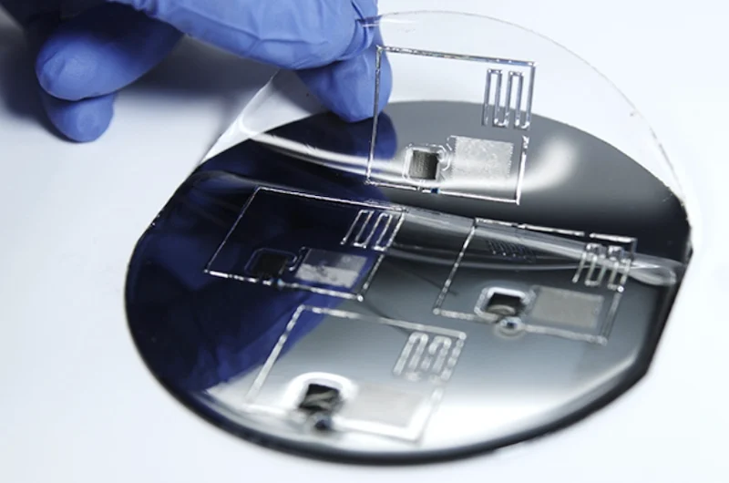 在此應(yīng)用中,無電池軟傳感器貼片應(yīng)用于硅晶片的制造后。圖片由卡內(nèi)基梅隆大學(xué)提供