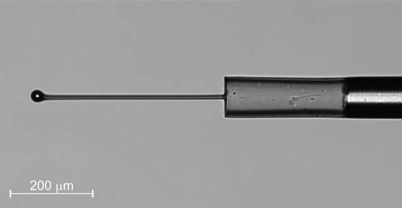 在光學(xué)學(xué)會(huì) (OSA) 期刊Optics Letters中,Donlagic 和 Simon Pevec 描述了他們的新傳感器,該傳感器由石英玻璃制成,形成一個(gè)只有 800 微米長和 100 微米直徑的圓柱體——與人類頭發(fā)的直徑大致相同。他們通過測量蒲公英種子的硬度或液體的表面張力,證明了新傳感器能夠以比微牛頓更好的分辨率測量力。