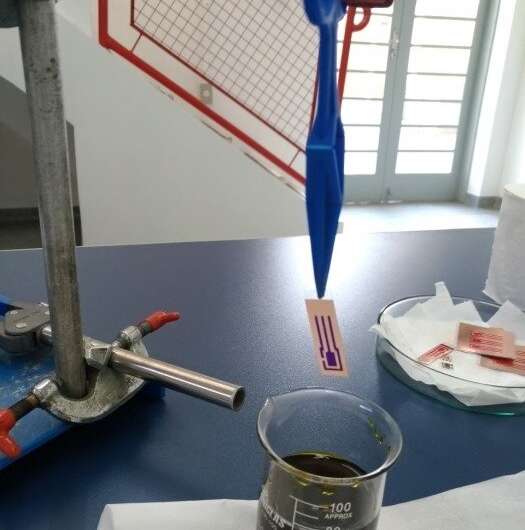 “在發(fā)明完成之前,我們沒有發(fā)現(xiàn)關(guān)于柔性銅傳感器用于檢測汗液中有毒金屬的報(bào)告,但前部搜索可能會發(fā)現(xiàn)類似的東西,可能會阻止專利申請,”該文章的另一位合著者,IQSC-USP的研究員Marcelo L. Calegaro說。