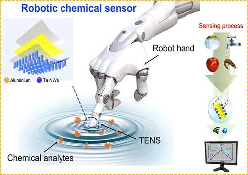 為了制造他們的TENS,該團隊使用了一系列對汞敏感的碲納米線。這使得他們的傳感器具有高度選擇性,即使在復雜的樣品中也能挑選出目標。研究人員將TENS安裝在機器人手的指尖上,并反復將其觸摸到樣品溶液中。電壓的變化以無線方式實時傳輸?shù)街悄苁謾C,對應于汞離子的存在與否。