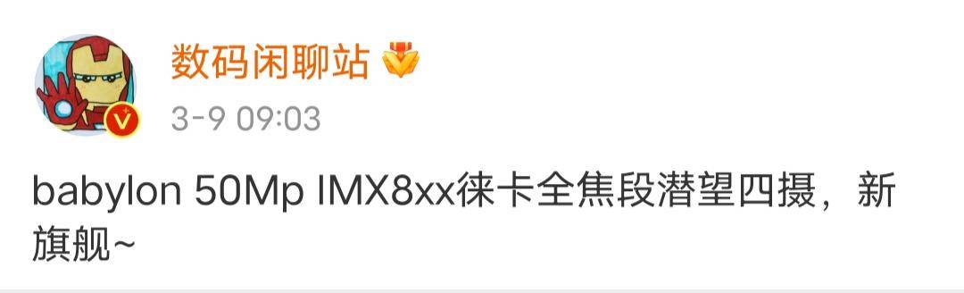 今日,博主@數(shù)碼閑聊站爆料“babylon 50Mp IMX8xx徠卡全焦段潛望四攝,新旗艦~”該博主后來將該條爆料信息改為了“早”。根據(jù)評(píng)論區(qū)可知,該博主爆料中所提到的機(jī)型或?yàn)樾∶?4 Pro,意為小米14 Pro的后置主攝或?yàn)?000萬像素,搭載索尼IMX8xx大底傳感器,擁有徠卡全焦段潛望四攝。