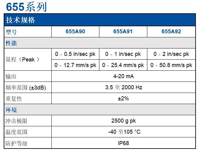 2023年2月,紐約州Depew市-PCB公司旗下IMI工業(yè)傳感器部門(mén)宣布正式發(fā)布新型號(hào)655/656系列低成本4-20mA振動(dòng)速度變送器。該型號(hào)集成了壓電振動(dòng)傳感器和4-20mA變送器,使用特色M12 4針接頭,655/656系列的設(shè)計(jì)便于和現(xiàn)有的工業(yè)監(jiān)測(cè)系統(tǒng)集成。該變送器內(nèi)置的壓電元件提高了測(cè)試精度,而且頻率響應(yīng)擴(kuò)大為3.5Hz到2kHz。