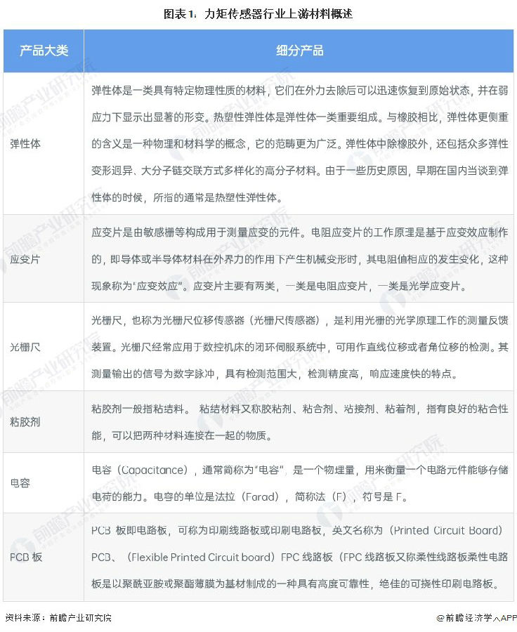力矩傳感器主要上游材料有彈性體、應(yīng)變片、光柵尺、粘膠劑電容和PCB板。彈性體是力矩傳感器中的一個關(guān)鍵部件,它起到連接傳感器外殼和測量物體的作用。力矩傳感器彈性體不僅需要具有良好的彈性,能夠抵抗振動和沖擊,同時還需要能夠在物體和傳感器之間產(chǎn)生足夠的力以保證測量的準(zhǔn)確性。