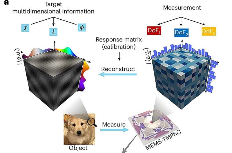 研究人員證明,通過使用致動器改變光子晶體層的距離和旋轉(zhuǎn)位置,他們可以進(jìn)行同時(shí)高光譜和超偏振成像 —— 這意味著傳感器捕獲的每個(gè)像素都包含來自整個(gè)電磁光譜的信息以及關(guān)于偏振狀態(tài)的詳細(xì)信息。這是首個(gè)具有主動調(diào)諧功能、能夠展示光的多種屬性詳細(xì)信息的設(shè)備。