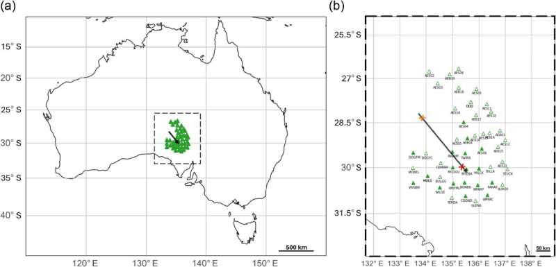 火球事件產(chǎn)生的沖擊波會(huì)以地震波或聲波的形式被地面捕捉到。在這項(xiàng)研究中,研究人員使用了澳大利亞永久性地震臺(tái)網(wǎng)以及兩個(gè)臨時(shí)高密度地震臺(tái)網(wǎng)(分別在 2018-2022 年和 2020-2022 年運(yùn)行)所捕捉到的地震數(shù)據(jù)。