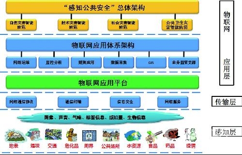 公共安全管理的關(guān)鍵是預(yù)先感知。感知的對象很多,例如地表、堤壩、道路交通、公共區(qū)域、;贰⒅芙、水資源、食品藥品生產(chǎn)環(huán)節(jié)以及疫情等容易引起公共安全事故發(fā)生的源頭、場所和環(huán)節(jié);感知的內(nèi)容包括震動、壓力、流量、圖像、聲音、光線、氣體、溫濕度、濃度、化學(xué)成分、標(biāo)簽信息、生物信息等;感知的目的就是要準(zhǔn)確獲取管理對象的異常變化。