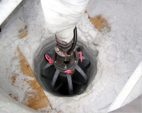 冰立方增強(qiáng)型熱水鉆的鉆頭從冰層中顯露出來。鉆出一個(gè)冰洞需要耗費(fèi)18170升的汽油,并融化掉757立方米的冰塊。