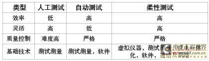 柔性測試在滿足產品自動測試基本需求之上的適度調整與拓展的能力,與其他測試技術比較