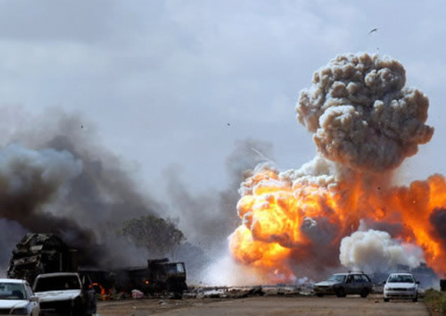 3月20日,班加西附近,忠于卡扎菲的武裝力量裝備遭遇聯(lián)軍襲擊