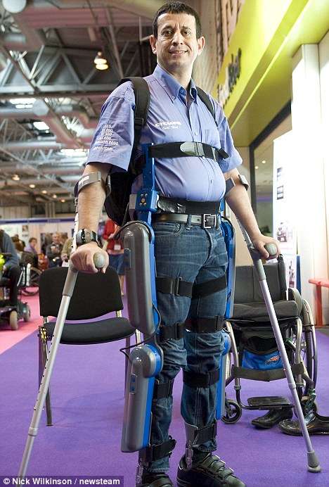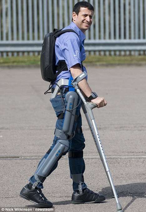 據(jù)英國(guó)《每日郵報(bào)》報(bào)道,ReWalk設(shè)備包括裝配發(fā)動(dòng)機(jī)的腿部支架,傳感器,裝有電腦控制器和電池的黑色背包及一支幫助身體平衡的拐杖。穿上這條機(jī)器褲后,所有動(dòng)作完全由用戶控制,用戶可通過(guò)手腕上的遙控腕帶發(fā)出站、坐、行,蹲等命令,身體前傾以激活身體傳感器,機(jī)械腿就可以行走了。停下來(lái)也非常簡(jiǎn)單,只需要直起身體。