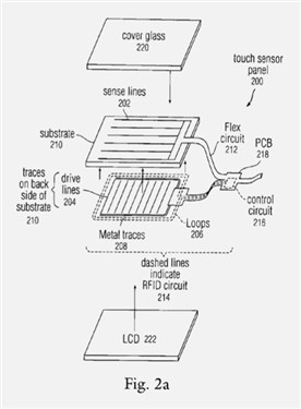據(jù)了解,這是一個可以位于觸控屏幕上的RFID標(biāo)簽讀取器,可以與觸摸傳感器電路板上的RFID電路結(jié)合,共用的金屬天線可以使設(shè)備不通過接觸就可以實現(xiàn)RFID應(yīng)答。