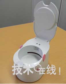 圖:SEEMS試制的乳腺癌傳感器實(shí)機(jī)模型。這個(gè)試制品展示了把含有體臭的墊片放入溝槽,蓋上蓋子進(jìn)行測(cè)定的模式,無(wú)法實(shí)際工作。該公司只開(kāi)發(fā)內(nèi)部的傳感器技術(shù),最終產(chǎn)品的開(kāi)發(fā)希望委托給產(chǎn)品廠商。