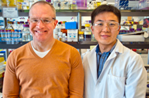 燃料提升:杰伊·柯斯林(左)和張福忠(Fuzhong Zhang),他是第一作者,發(fā)表文章介紹這項新的研究工作,這是他們在伯克利聯(lián)合生物能源研究所(JBEI:Berkeley’s Joint BioEnergy Institute)。