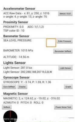 圖1:Galaxy Note II的工程模式中的傳感器測試