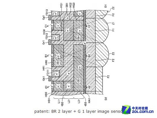因而可以理解為這是一款混合式的傳感器設(shè)計(jì),一層為傳統(tǒng)拜耳傳感器設(shè)計(jì)的紅藍(lán)像素層,一層則為foveon的綠色層,也就是X3+馬賽克設(shè)計(jì)。這樣的好處是將最影響傳感器感光度的綠色層獨(dú)立出來,從而提高綠色的采集效率,因而新傳感器的感光性能應(yīng)該更好。我們期待這項(xiàng)專利能夠盡早實(shí)用化,相信屆時相機(jī)的高感性能將得到進(jìn)一步提升。