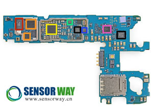 Galaxy S5中的加速度計/陀螺儀傳感器(藍色標記)