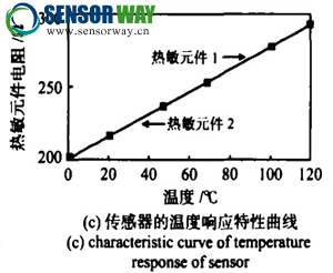 溫度測試采用標(biāo)準(zhǔn)油槽和冰水槽,熱敏元件標(biāo)定范圍 為0~120'C,從圖5(c)可以看出:熱敏元件在溫度范圍為 0~120 C,2個(gè)熱敏元件對應(yīng)的阻值幾乎均為200~291Q , 特征曲線呈較好的線性。