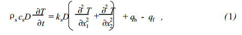 式中Ps為傳感器材料密度,kg.m-3; c3為比熱,J.kg1,K-1; ks為熱導(dǎo)率,W K-1 .m-1。