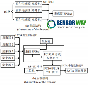 本文針對這些問題,采用多級的現(xiàn)場可編程門陣列(FPGA),利用其高速的并行處理能力,靈活可變的現(xiàn)場可 編程能力以及豐富的IP核資源,實現(xiàn)400只霍爾型傳感器同時采集數(shù)據(jù)并及時存儲,滿足了高精度管道內(nèi)漏磁檢測器的所需精度要求。